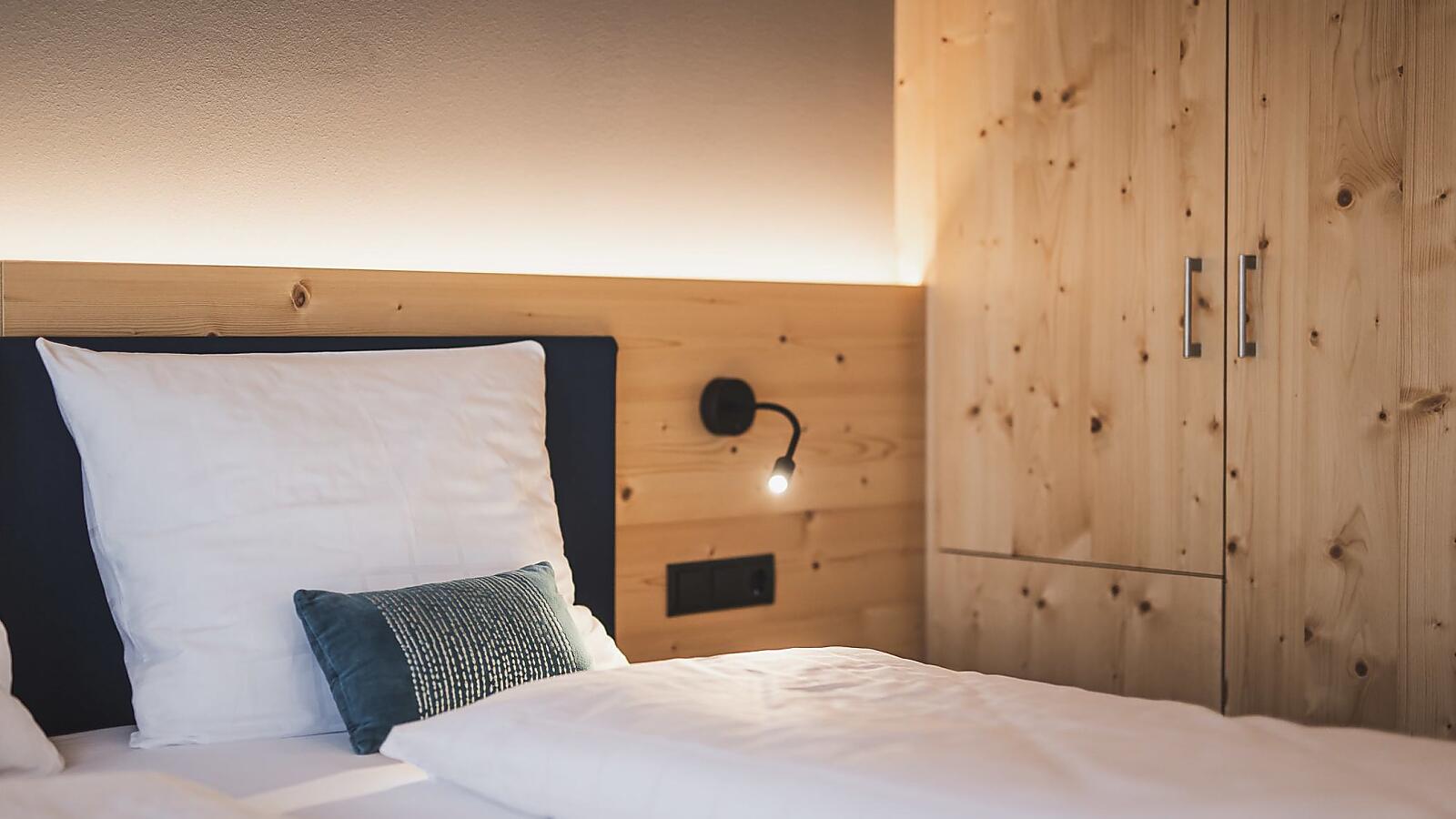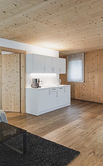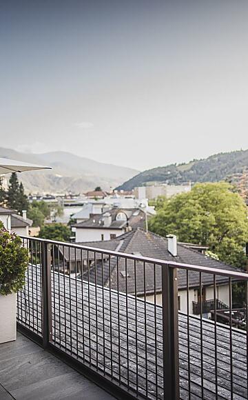 The City Loft captivates with simple elegance and plenty of space for socializing. Particularly popular is the large terrace with a sun island, loungers, dining table, and beanbags. The City Loft is the largest apartment in Residence Nives. It offers a breathtaking view over the rooftops of Brixen. The entire apartment is made of wood and, thanks to the separate bedroom and living-sleeping area, is ideal for 4 people.