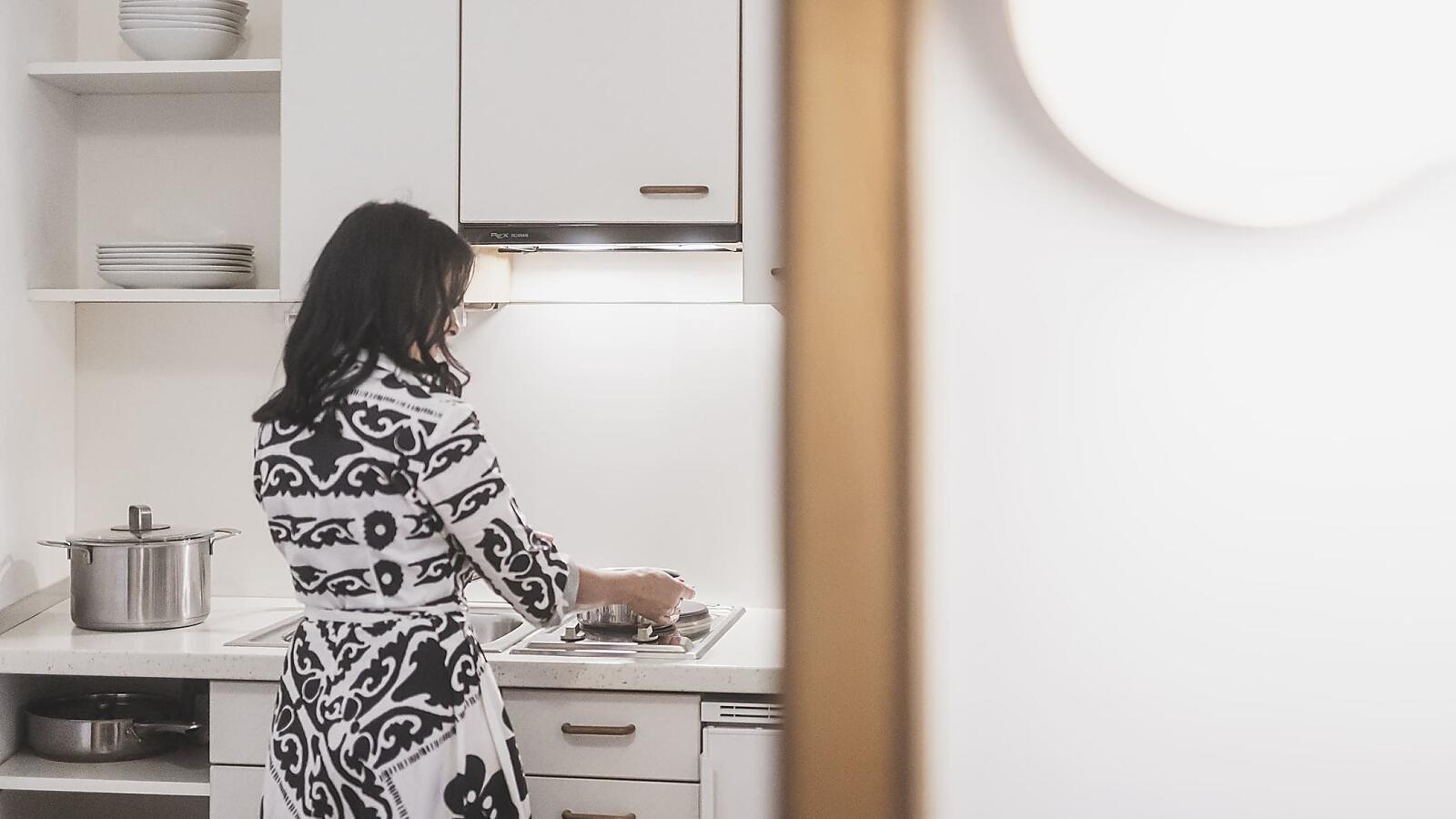 Gemütlich ausgestattetes Studio in der 2. Etage mit kleinem Balkon mit Blick auf die Plose. Es erwarten Sie dezente Farben, gemütliche Sitzgelegenheit und eine gut ausgestattete Küchenzeile. Badezimmer mit Dusche, Bidet und Pflegeprodukte von Rituals.
