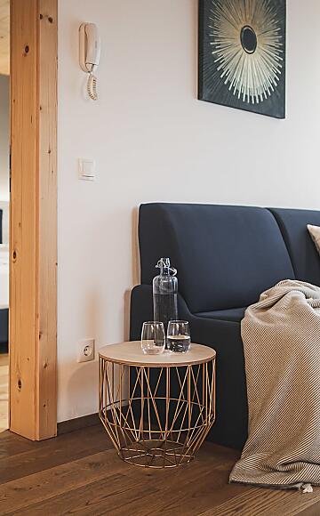 Dove è la vista migliore? Naturalmente in cima! Nell'appartamento "Roof Top", incanta non solo la vista, ma anche una grande terrazza con lettini e tavolo da pranzo. L'intero appartamento Roof Top è realizzato in legno, creando un'atmosfera particolarmente accogliente. Contribuiscono a questo anche i Beanbags sulla terrazza. Grazie alla separazione tra camera da letto e soggiorno con divano letto, l'appartamento può ospitare fino a 4 persone.